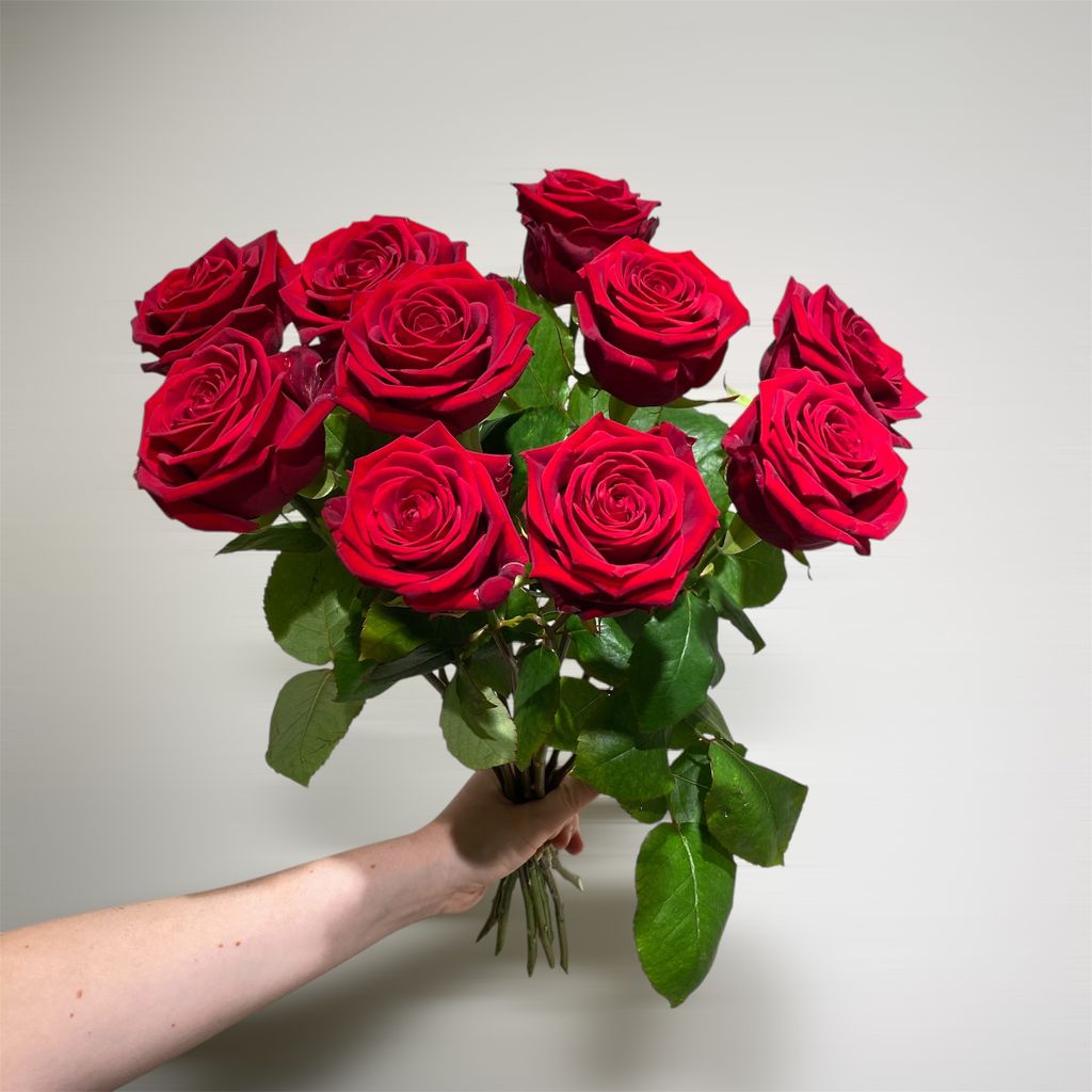 Visa vad du känner med en bukett ståtliga röda rosor! 10 röda rosor är en perfekt gåva för att fira jubileum, födelsedag eller romantiska tillfällen.