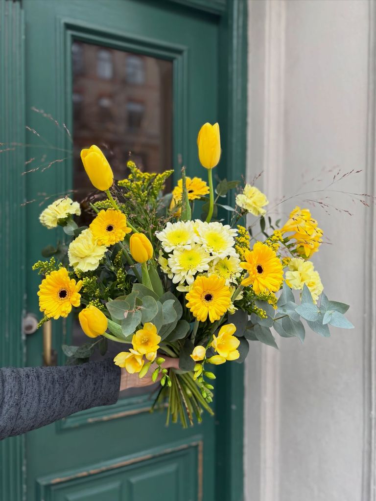 Observera att bilden är en exempelbukett och att påskblommorna kan variera.