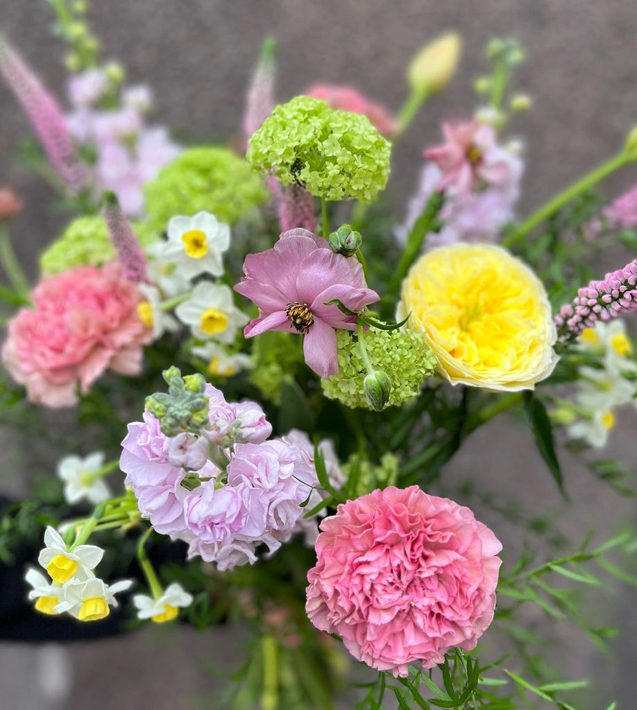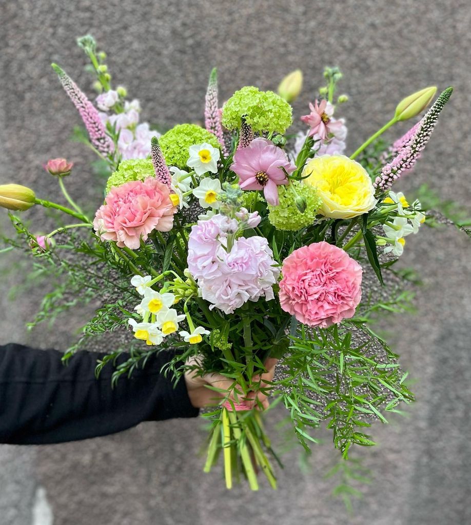 Observera att bilden är en exempelbukett och att blommorna varierar efter säsong.