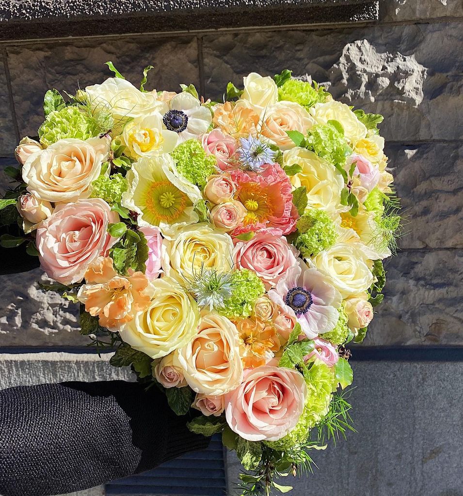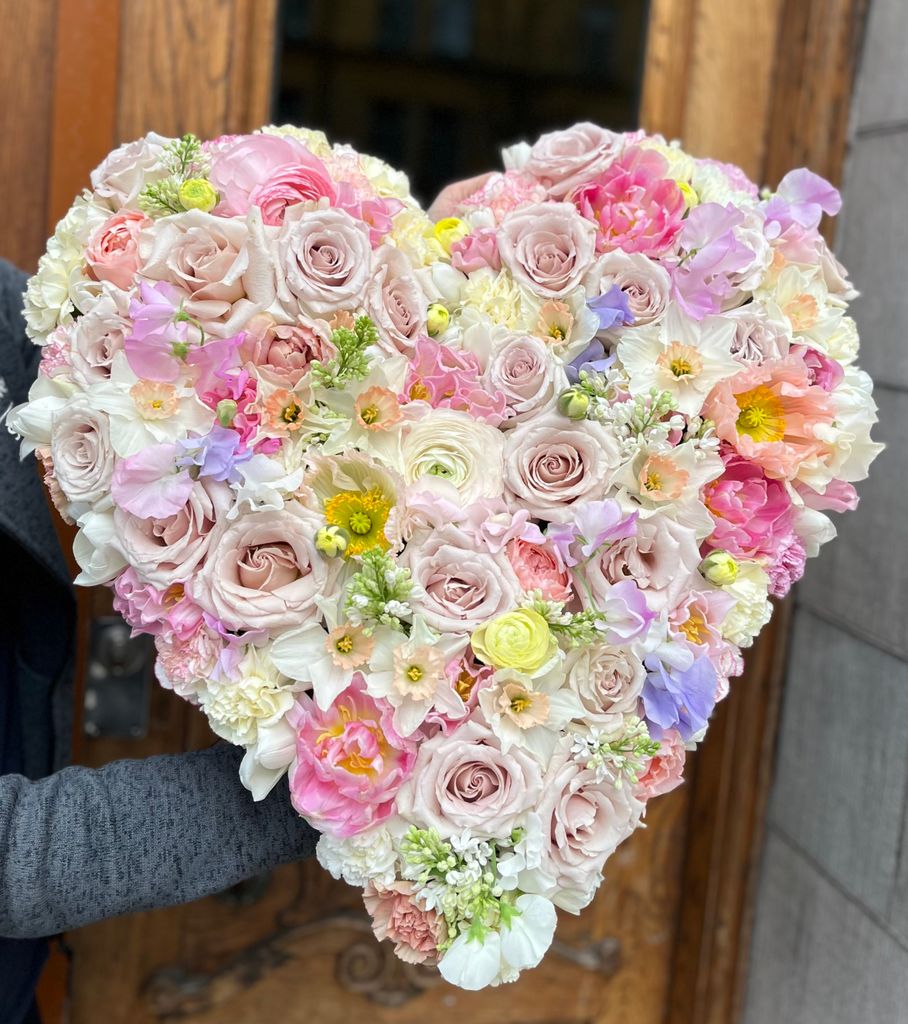 Floweropens bästa florister skapar ett vackert begravningshjärta med säsongens blommor och färger.