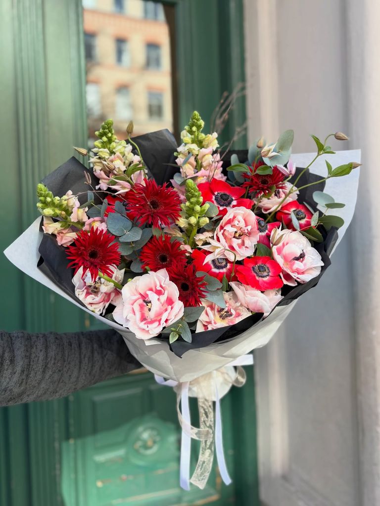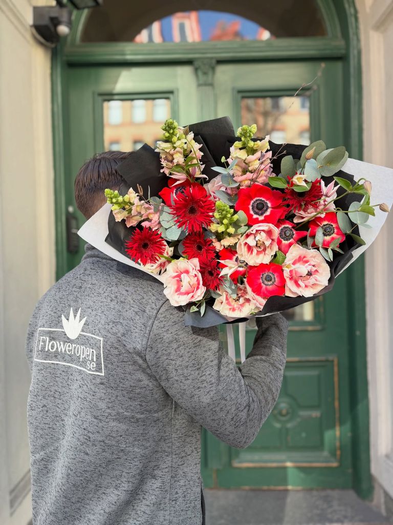 Fira stort och skicka säsongens blommor med en färgsprakande bukett som blombud. Vi sätter samman noggrant utvalda blommor, välkomponerade med Floweropens val av säsongens blommor som går i rött, rosa och lila. En livlig och glädjefylld bukett som passar perfekt när något – eller någon – förtjänar ett rungande hurra!