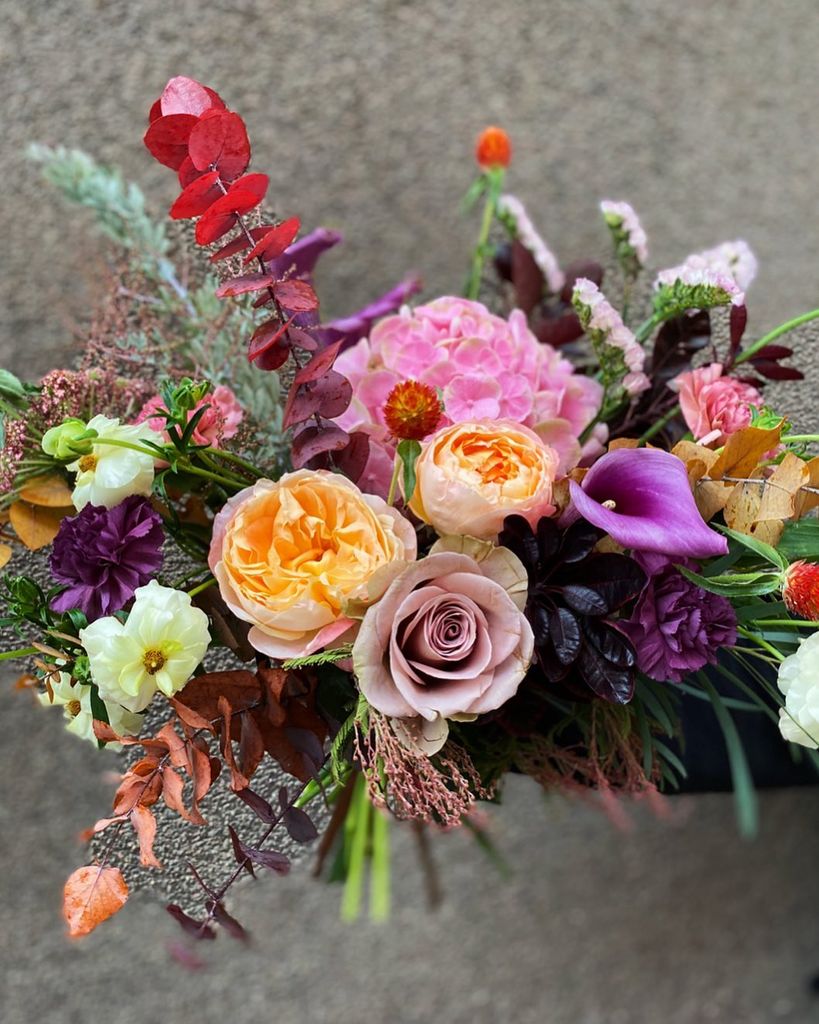 Observera att bilden är en exempelbukett och att blommorna varierar efter säsong.