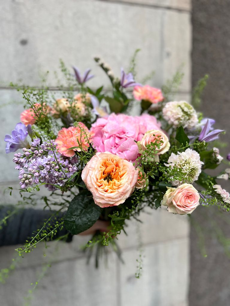Observera att bilden är en exempelbukett och att blommorna varierar efter säsong.