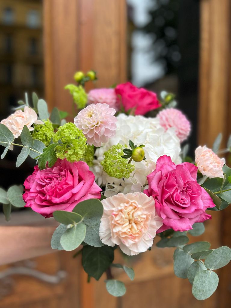 Observera att bilden är en exempelbukett och att blommorna varierar efter säsong.